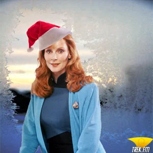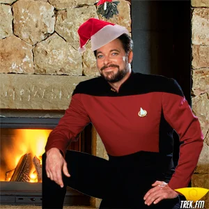The weather outside might be frightful, but the holiday spirit on the Enterprise is delightful. The crew recently set aside some time on the holodeck for their own merry celebration — a time away from staff meetings, escorting prestigious diplomats, and negotiations in the Neutral Zone. Trek.fm’s managing editor, Charlynn Schmiedt, talked each member of the crew into posing for a portrait with a Santa hat.*